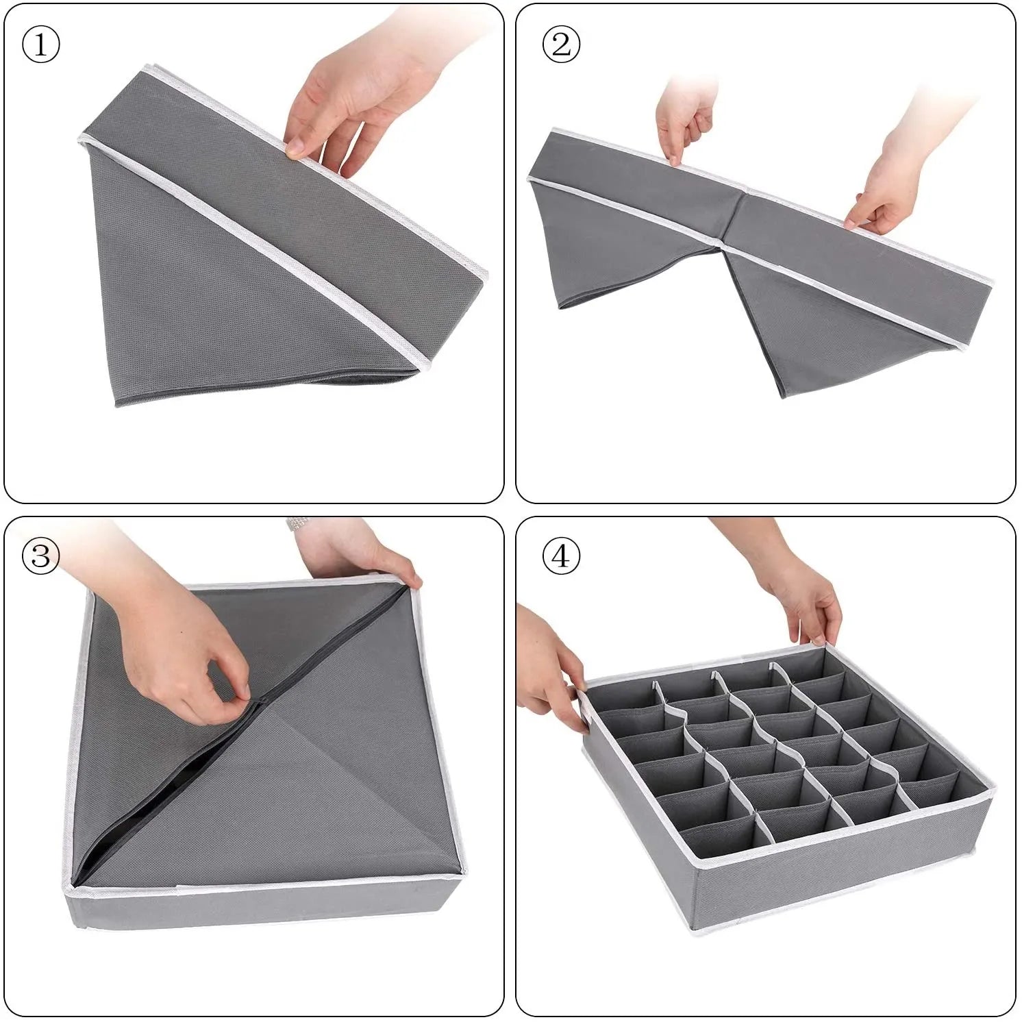 30 Grids Underwear Socks Storage Organizer With Foldable Closet Drawer Divider